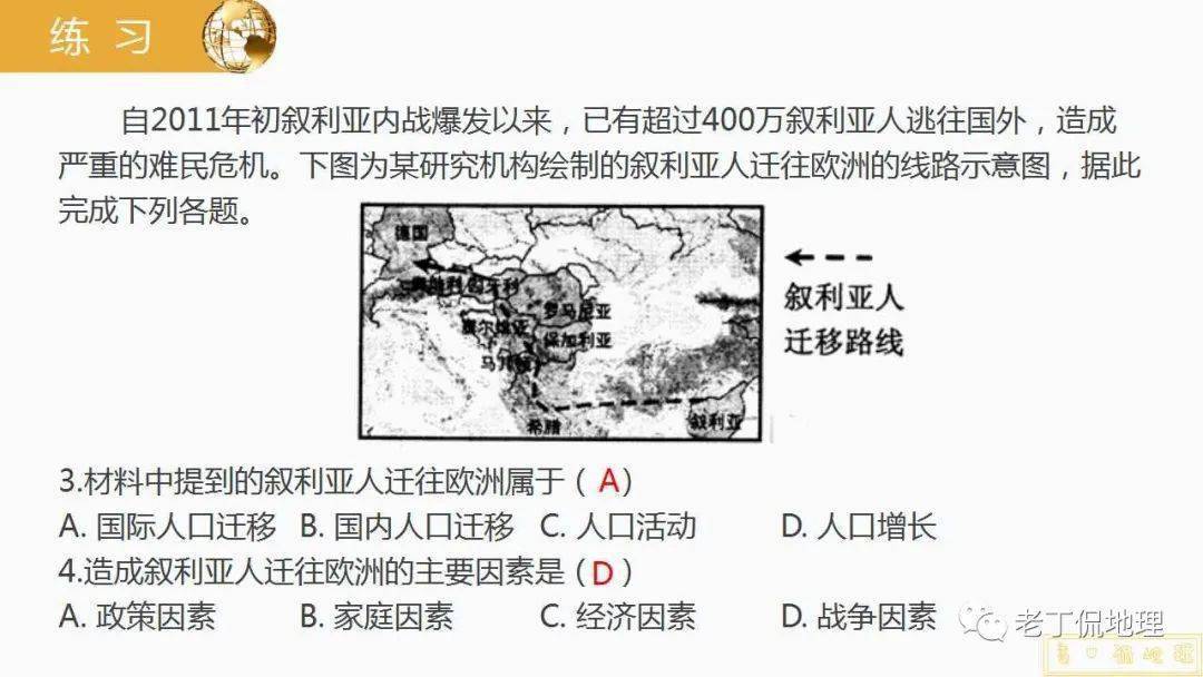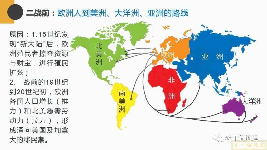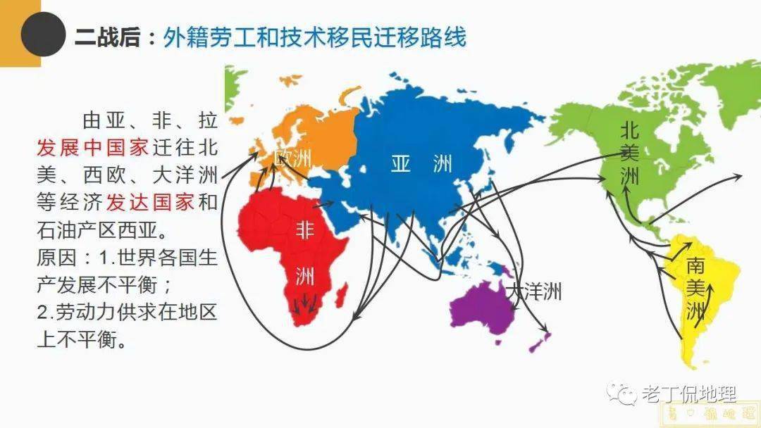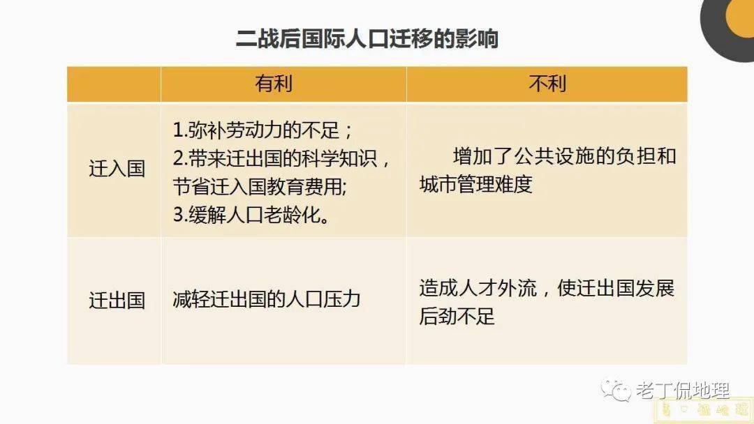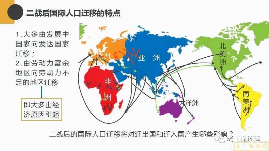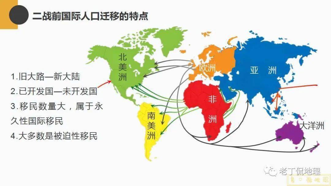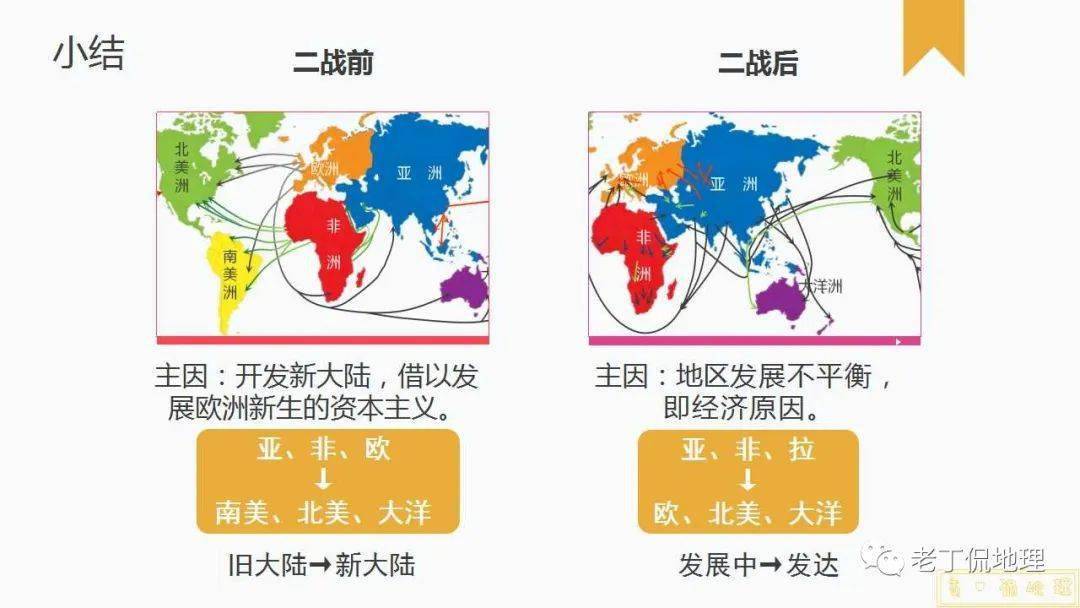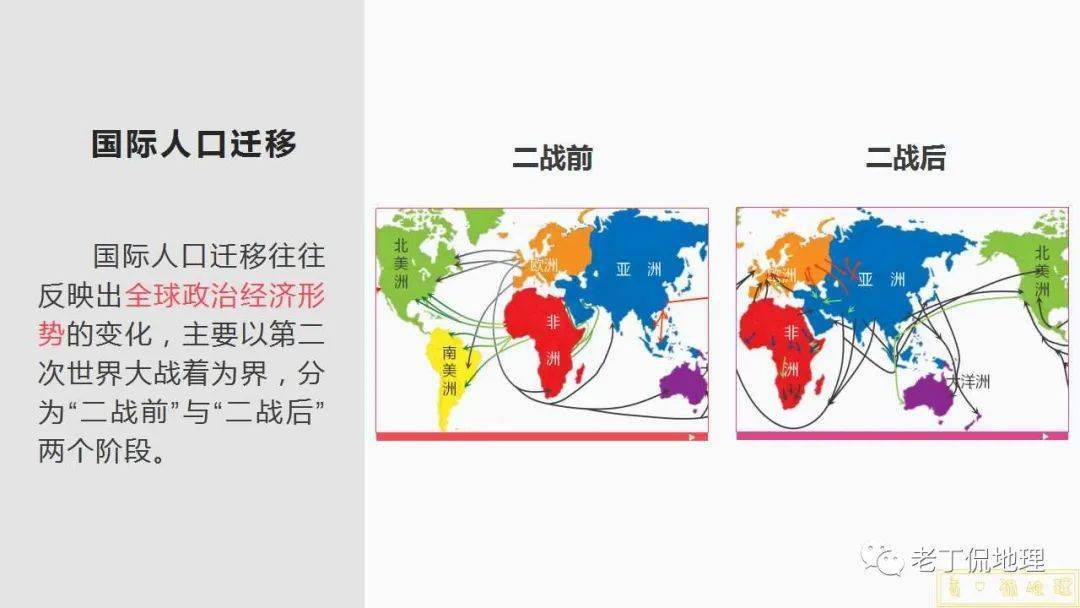 通过对比二战前后的国际人口迁移的异同点和知识小结,让学生全面的,扎实的把握国际人口迁移的特点。