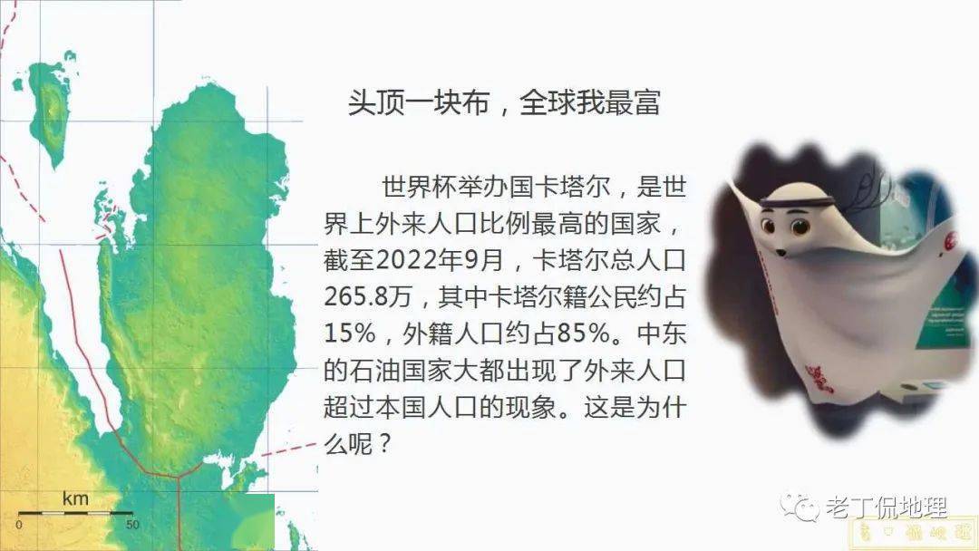 头顶一块布,全球我最富,世界杯举办国卡塔尔,是世界上外来人口比例最高的国家,外籍人口约占85%。中东的石油国家大都出现了外来人口超过本国人口的现象。为什么会出现这样的现象?世界其他地区的人口迁移都经历了什么样的演变?《人口迁移》的第二课时,让我们一起通过 详实的图文资料,充分了解国际和我国不同时期人口迁移的特点及原因吧!