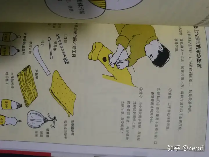 再比如说去污,谁也免不了吃饭不小心溅了点油,留下油印,但了解到书里这些基本的去污知识,做到心中有数,至少不会为了白毛衣上的污渍慌乱。
