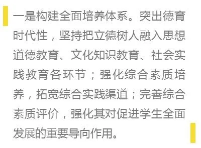 《意见》明确,到2022年,德智体美劳全面培养体系进一步完善,立德树人落实机制进一步健全。普通高中新课程新教材全面实施,适应学生全面而有个性发展的教育教学改革深入推进,选课走班教学管理机制基本完善,科学的教育评价和考试招生制度基本建立,师资和办学条件得到有效保障,普通高中多样化有特色发展的格局基本形成。
