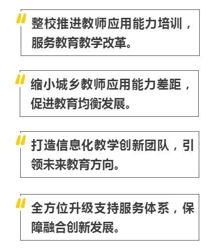 能力提升工程2.0突出以学校信息化教育教学改革发展引领教师信息技术应用能力培训,抓住“关键人群”,实行分类指导,适应技术发展,提出到2022年,构建以校为本、基于课堂、应用驱动、注重创新、精准测评的教师信息素养发展新机制,通过示范项目带动各地开展教师信息技术应用能力培训,基本实现校长信息化领导力、教师信息化教学能力、培训团队信息化指导能力“三提升”,和全面促进信息技术与教育教学融合创新发展的目标。