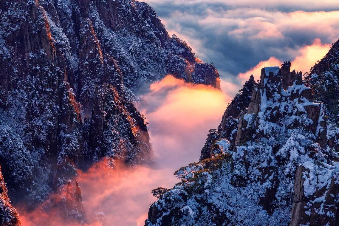 无论是松柏、怪石,还是落日、冬雪,在云海的装扮下,都让人为之陶醉。