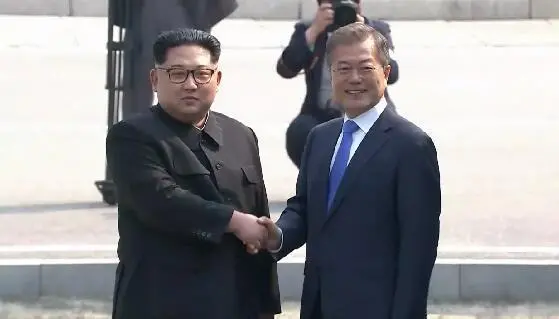 韩朝首脑会谈于4月27日在韩朝边境板门店韩方一侧“和平之家”举行,北京时间早上8时30分,朝鲜最高领导人金正恩跨越军事分界线,与韩国总统文在寅握手。金正恩先与文在寅握手,然后跨过军事分界线到韩方一侧,随后两人手牵手再跨过军事分界线,到朝方一侧的土地停留片刻。