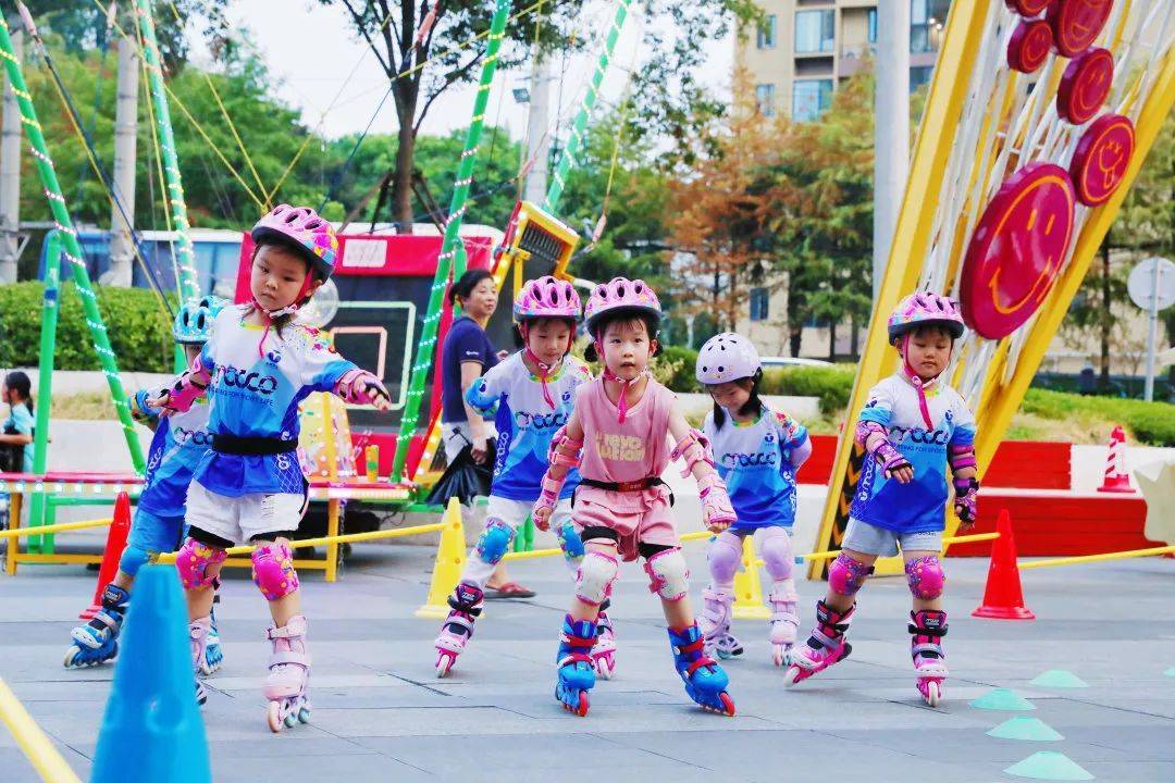 △孩子们在家门口的“万科里”商圈学习轮滑。