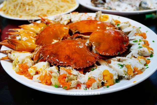 清蒸膏蟹,膏蟹一定要本港的才特别鲜美,当然也价格不同。本港的膏蟹,肉更鲜嫩,膏有香味,是越嚼越鲜美。