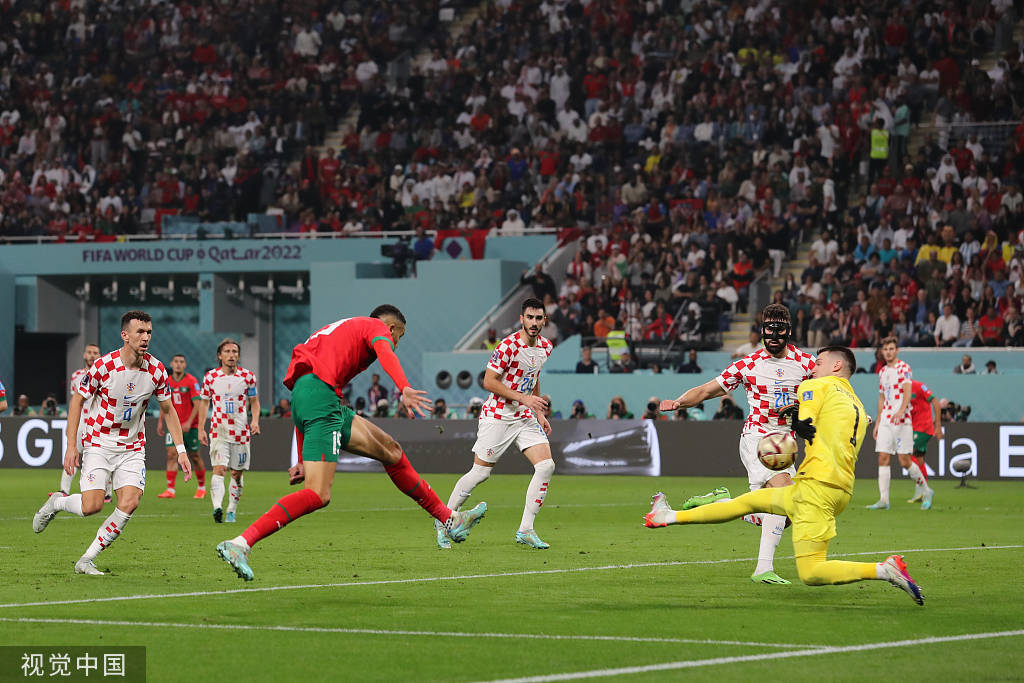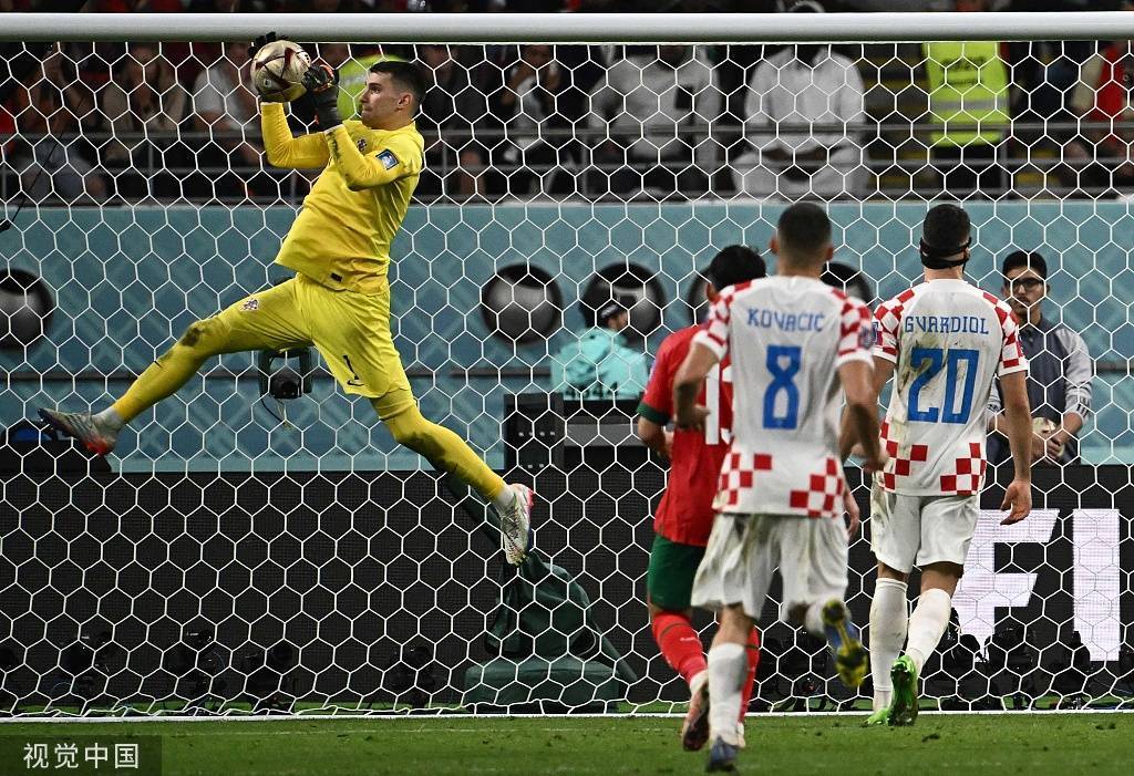 克罗地亚VS摩洛哥,利瓦科维奇扑住摩洛哥的进球。