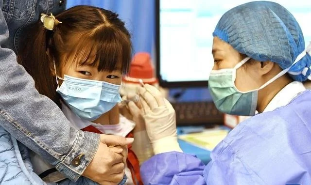 天津市河西区德贤小学组织学生在监护人的陪同下接种疫苗。图/新华社