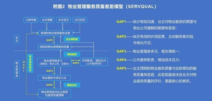 针对目前比较凸显的物业不满意点,零点通过物业管理服务质量差距模型(SERVQUAL)进行细致分析,发现导致业主不满意的深层原因可以归纳为如下5个方面: