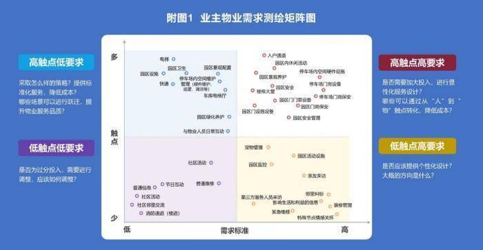 零点有数综合近三年住宅业主满意度研究成果,通过需求测绘矩阵分析发现,问题多发且业主需求度高的问题主要集中在物业费、基础管理、设施设备维护几个方面。
