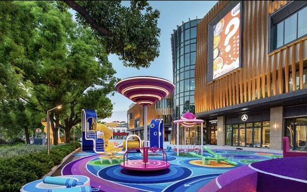 除此以外,商场依托自身外部空间条件,为金杨社区的孩子们重点打造了全年龄儿童户外互动区——棒棒糖乐园。鲜明、多彩的配色让人仿佛置身奇幻绚丽的童话世界,游玩内容丰富,已经成为周边很多亲子家庭放学、周末的“必去打卡地”。