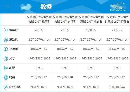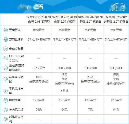 1、同款车型配置参数对比:针对用车人群不同,提供越野版和城市版可选