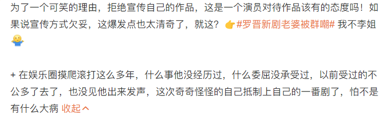 目前有不少网友都是拿这句话来驳斥罗晋,认为他自己矫情,耽误了那么好的剧目。