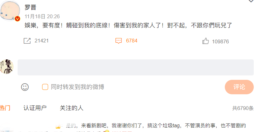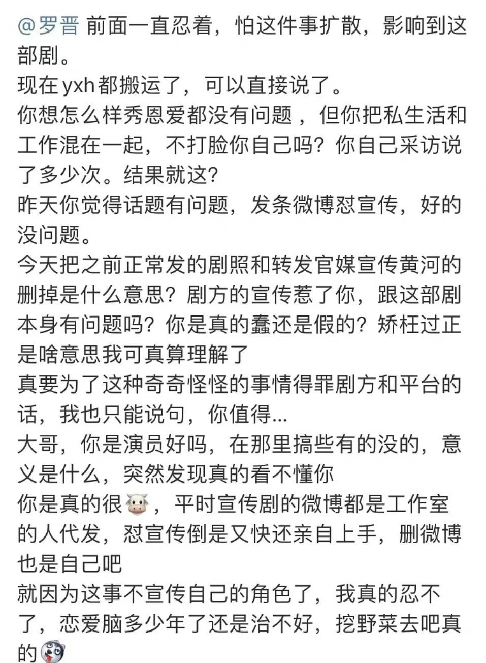 第一:突然传出疑似罗晋大粉倒戈,发文批评罗晋表达不满。