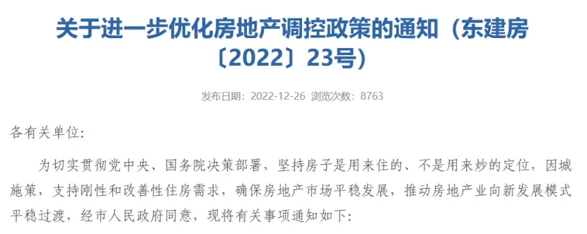 12月26日,东莞住建局发布《关于进一步优化房地产调控政策的通知》。