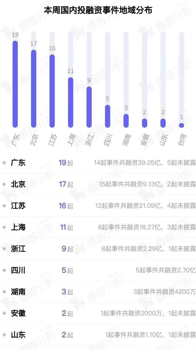 本周国内有1家新晋独角兽诞生,「如果新能源」完成数亿融资,声称跻身独角兽行列,海外新增独角兽5家。国内新晋独角兽太阳能光伏产品研发商「如果新能源」成立时间:2017-10-12轮次:E轮金额:数亿人民币估值:未披露投资方:前海母基金本周国内一级市场大额融资事件房地产开发商「四达实业」轮次:A轮(战略融资)金额:23亿人民币投资方:万科集团风能发电机供应商「远景智能」轮次:A轮金额:2.1亿美元投资方:红杉中国领投,GIC新加坡政府投资公司跟投金融解决方案提供商「金仕达」轮次:D轮金额:过十亿人民币投资方:国鑫投资、松观资本、东海投资、招商局创投、金浦投资、瑞元资本、华盖资本、IDG资本、上海人工智能产业投资基金、申万宏源证券、JPMorgan摩根大通、国鑫创投专业汽车高端制造装备供应商「明珞装备」轮次:E轮(战略融资)金额:6亿人民币投资方:中移资本、中网投基因检测和分子诊断技术研发商「鹍远基因」轮次:B+轮金额:3亿人民币投资方:由沣石投资领投,银河源汇、国经资本、隽赐投资、乾道基金、华晨美景、圣湘生物、佰仕德跟投香港抗衰老及癌症治疗药物研发商「Insilico Medicine英矽智能」轮次:D轮金额:6000万美元投资方:渤海华美、华平投资、波士顿咨询集团中国、启明创投、Bold Capital Partners、Deerfield Management、蘭亭投资、Aleksandrs Zavoronkovs点击查看更多融资事件海外独角兽统计本周共新增5家海外独角兽,共涉及金融、人工智能、教育培训、大数据、医疗健康行业。厄瓜多尔支付基础设施开发商「Kushki」项目简介:Kushki是一家厄瓜多尔支付基础设施开发商,专注于金融支付服务领域,开发了支付API接口,帮助企业轻松、便宜、安全地发送、接收和处理数字支付。当前轮次:B+轮金额:1亿美元估值:15亿美元项目所在地:厄瓜多尔所属行业:金融投资方:Kaszek Ventures、Clocktower Technology Ventures、Softbank Vision Fund、DILA Capital3D成像传感器研发商「Vayyar」项目简介:Vayyar开发领先的3D成像传感器,将开发世界新一代移动安全和低成本的成像设备。公司的传感器使用已经突破已知障碍技术,并将尖锐的成像功能带到您的指尖。Vayyar传感器可广泛应用于乳腺癌筛查,检测漏水,食品安全监控等领域。当前轮次:E轮金额:1.08亿美元估值:15 亿美元项目所在地:以色列所属行业:人工智能投资方:由Koch Disruptive Technologies(KDT)领投,Glynn Capital Management、Atreides Management、Battery Ventures(BV)、Bessemer Venture Partners(BVP)、MoreVC、ClalTech、Regal Four跟投印度在线教育服务商「Physics Wallah」项目简介:Physics Wallah是印度一家在线教育服务商,为6至12年级的学生以及准备JEE和NEET考试的学生提供教学课程,此外还提供直播授课、视频讲座、测试系列和动态练习。当前轮次:A轮金额:1亿美元估值:11亿美元项目所在地:印度所属行业:教育培训投资方:WestBridge Capital Partners、GSV Ventures数据源聚合管理平台「Immuta」项目简介:Immuta是一家帮助数据分析师整合数据源的美国信息管理平台,令管理员能够对数据进行控制以及对数据的隐私进行保护,同时能让数据分析师采用机器学习技术对数据进行研究。当前轮次:E轮金额:1亿美元估值:10亿美元项目所在地:美国所属行业:大数据投资方:由NightDragon领投,Ten Eleven Ventures、StepStone Group、March Capital Partners、Intel Capital、International Airlines Group、DFJ Growth、Dell Technologies Capital、Snowflake Ventures、Wipro Ventures跟投医疗技术和服务提供商「Carebridge」项目简介:CareBridge 是一家技术和服务提供商,可协助健康计划和各州照顾接受长期支持服务的个人。CareBridge 的服务包括电子访问验证 (EVV)、数据聚合、24/7 会员支持和福利管理。CareBridge 是通过收购 HealthStar 和 Sinq Technologies 成立的,由一支经过验证的医疗保健服务和技术运营商团队领导。当前轮次:B轮金额:1.4亿美元估值:10亿美元项目所在地:美国所属行业:医疗健康投资方:由Oak HC/FT领投,Optum Ventures、HLM Venture Partners、CVS Health、Anthem跟投点击查看更多融资事件本周海外一级市场超大额融资事件新加坡免疫疗法研发商「Tessa Therapeutics」轮次:A轮金额:1.26亿美元投资方:由Polaris Partners领投,淡马锡Temasek Holdings、Heritas Capital Management、Heliconia Capital Management、EDBI跟投点击查看更多融资事件本周国内一级市场活跃机构从机构投资活跃度来看,君联资本(3个投资事件)、基石资本(3个投资事件)、中金资本(3个投资事件)在本周创投市场中较为活跃,在本周均参与了3个投资事件。