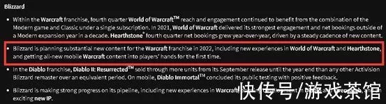 近日,在暴雪官方报告中,关于《魔兽》手游的消息再次被提及,暴雪表示在2022年将会首次为玩家带来《魔兽》手游的全新内容,同时还有《魔兽》和《炉石》的最新内容和体验。考虑到此前已经有消息爆料暴雪有一款全新IP的游戏已经开发多年,《OW2》和《暗黑4》也已经处于等待发售之中,再加上确定以及不确定的多款手游,暴雪似乎又行了?