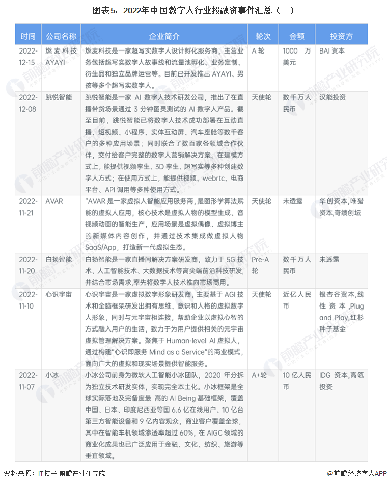 【投资视角】启示2023:中国数字人行业投融资及兼并重组分析(附投融资事件汇总、重点投资领域和兼并重组事件等)