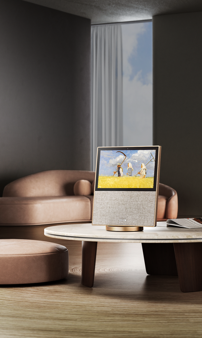 小度智能屏X10第二代承袭小度智能屏旗舰产品的旗舰风范,在外观设计上全新升级,由硅谷知名设计公司「fuseproject」倾心打造,香槟色金属质感边框与柔软织物形成精妙反差,搭配合金压铸底座,更具沉稳气度。