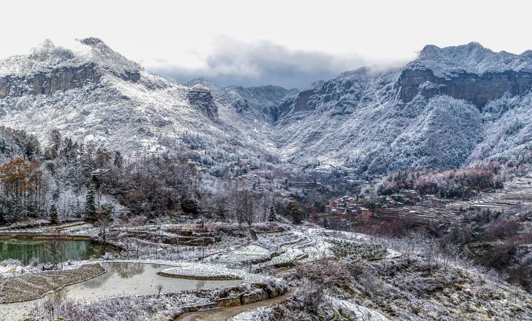 2022年12月28日,重庆市,南川区德隆镇,雪后山乡犹如一幅水彩画。(本文来源:视觉中国)
