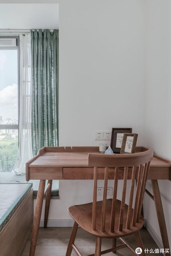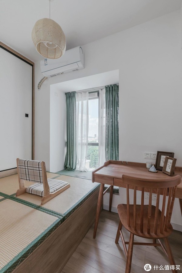 书房借用日式和室设计,以原木色为主调,定制榻榻米地台,可休闲可收纳,还可以充当卧室使用。充沛的阳光,给予了空间更温暖舒适体验,不管是人还是喵咪,都很喜欢在这躺平。