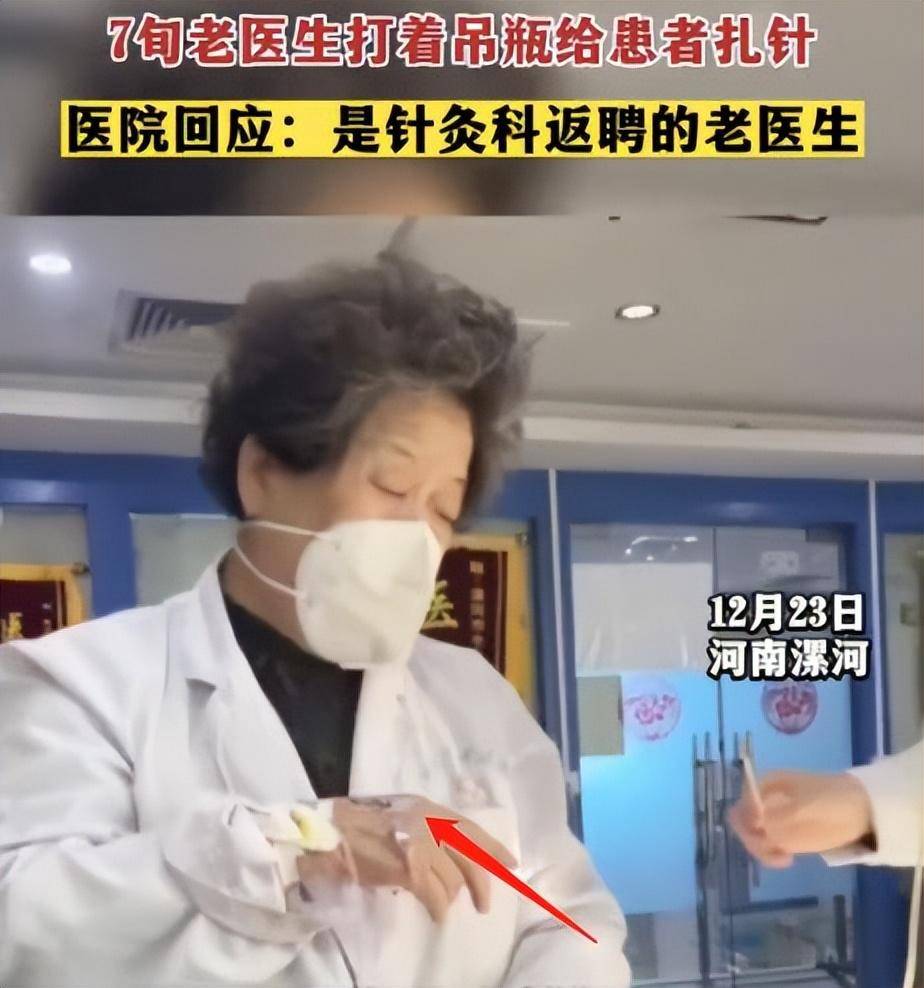 从精神状态来看,医生很疲惫,她的右手还扎着针,知情人透露,医生已经退休,是返聘来上班的,看到急诊室忙碌,她生病了也不休息,坚持带病上岗。