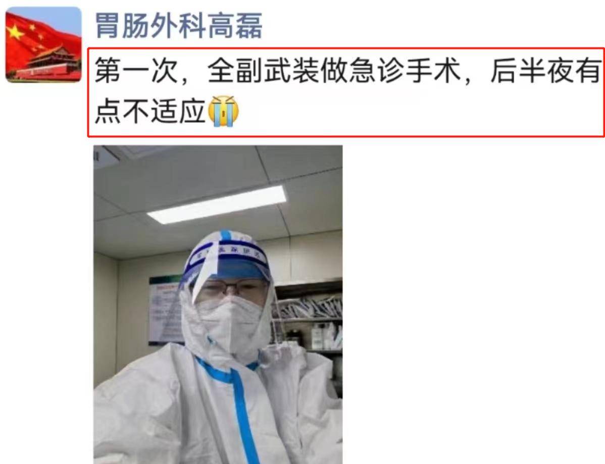 胃肠外科的高医生说:“第一次全副武装做急诊手术,后半夜有点不适应。”