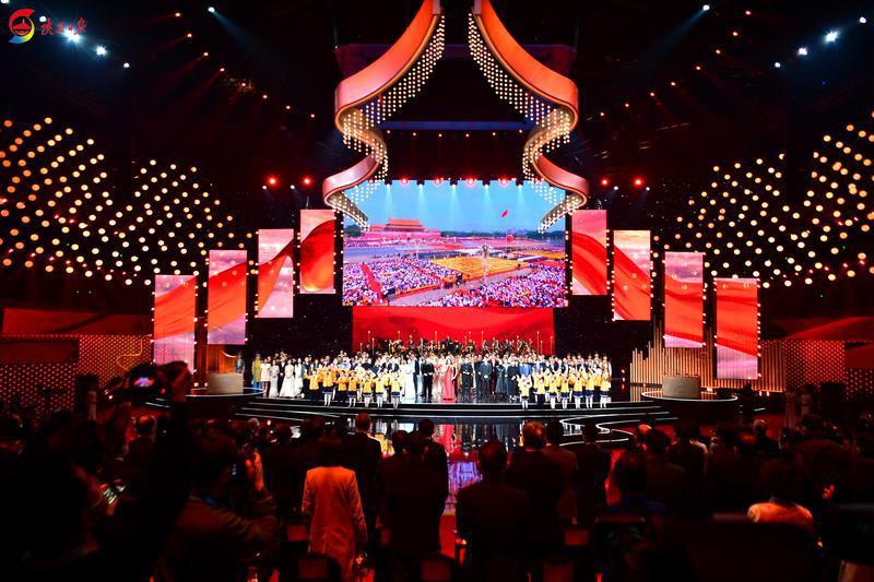 第九届丝绸之路国际电影节开幕式上,现场所有人员共唱《我爱你中国》。