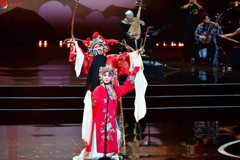 第九届丝绸之路国际电影节开幕式上,演员为现场观众展示戏曲的魅力。