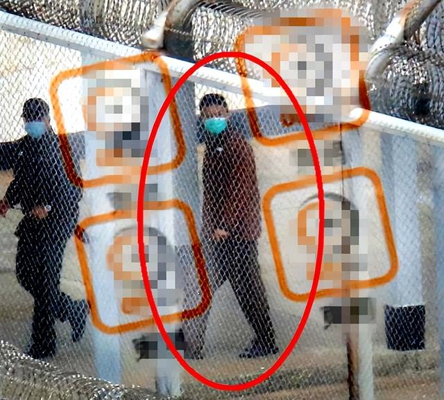 从照片可见,杨明身穿长袖刑服,发型跟身材没有太大变化,他走路昂首阔步,状态看起来不错。