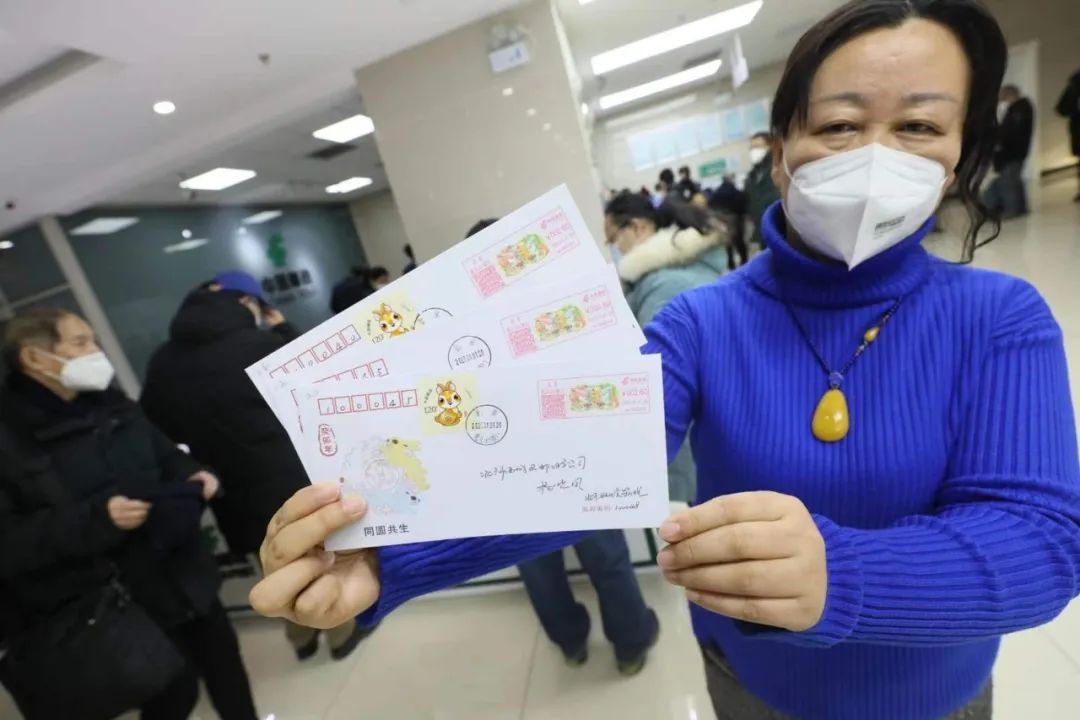 当天上午一开门,不少“邮迷”就相约而至,不仅在生肖原地封写下地址,寄托祝福,还加盖了生肖原地封同图的《兔儿山原地纪念》彩戳,寄给亲朋好友作纪念。