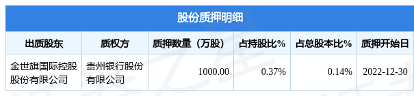 中天金融(000540)股东金世旗国际控股股份有限公司质押1000万股,占总股本0.14%