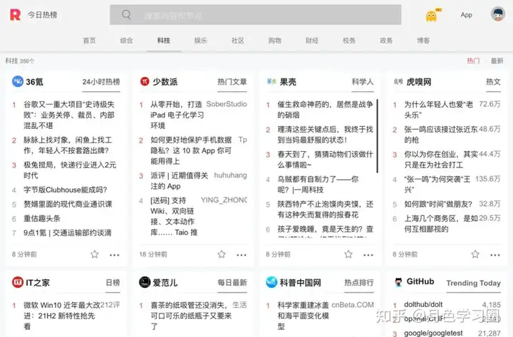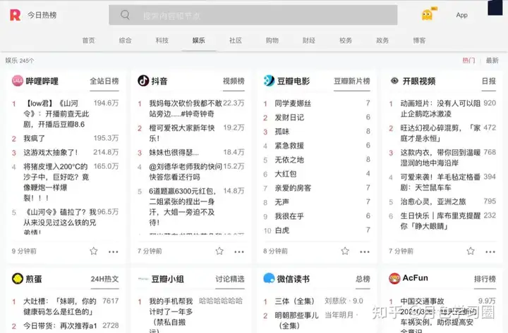网站体验它是一个实用的热榜合集网站,它集合了包括科技,娱乐,新闻,社区等等几十个网站的实时热榜。