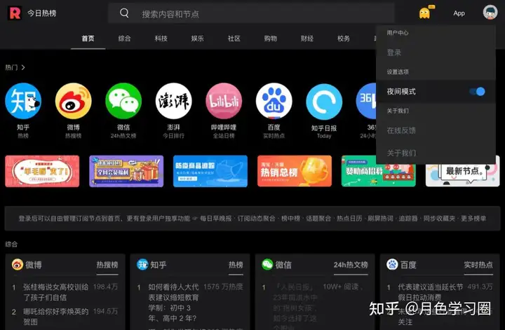 今日热榜内还有黑夜模式,让你在夜晚观看时不再伤眼,更加便捷。