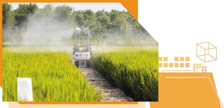 在上海土是宝数字农场,智能变量喷雾机器人利用中国移动5G+北斗高精度定位,精准规划农机作业范围。