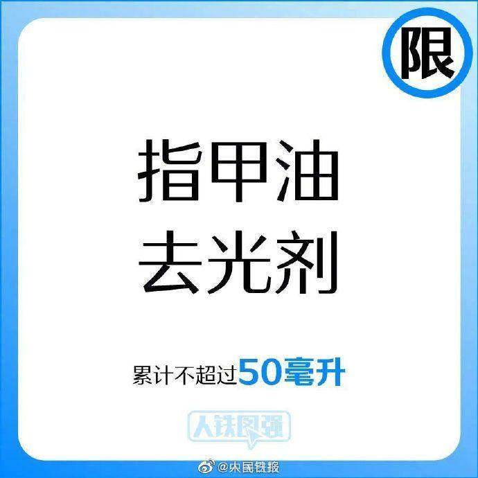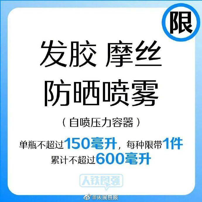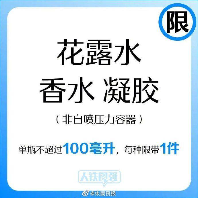 ②坐火车香水喷雾等单瓶不超100毫升,每种限带1件;