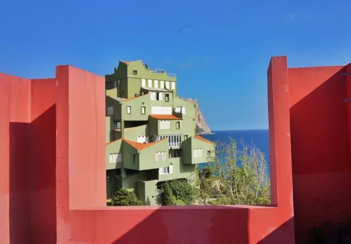 这处位于西班牙Calpe(西语)/Calp(英语)卡尔佩小镇上的红墙la Muralla Roja 成为了新晋INS网红旅游景点。 它因为鲜艳的外墙色彩和几何形状出名,大楼里种着许多热带和地中海风情的植物和鲜花。因为地处海边,天气晴朗时在地中海蔚蓝的海水和天空的映衬下,仿佛童话里的梦幻世界一般。
