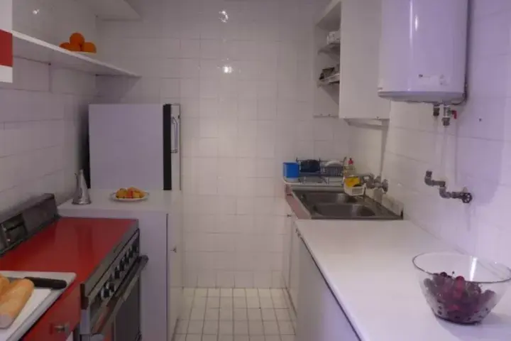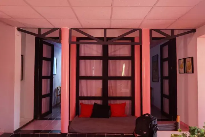 Miguel房型很特别,厅里有三面墙放了3处高起的榻榻米,一处正对一张茶几,另外还有张6人坐的桌子,非常适合搞轰趴。另外一面墙全玻璃,通往阳台,正对蔚蓝色地中海,景色很美。阳台上也有一处高起的榻榻米,适合午后边看海景边晒太阳。房子中一共有两间卧室,一间双人床,一间并排的两张双人床,算上厅里最大的一张榻榻米,睡5个人可以说妥妥的。美中不足的是没有空调(虽然似乎海边小镇一年四季气候都不错),以及没有wifi。