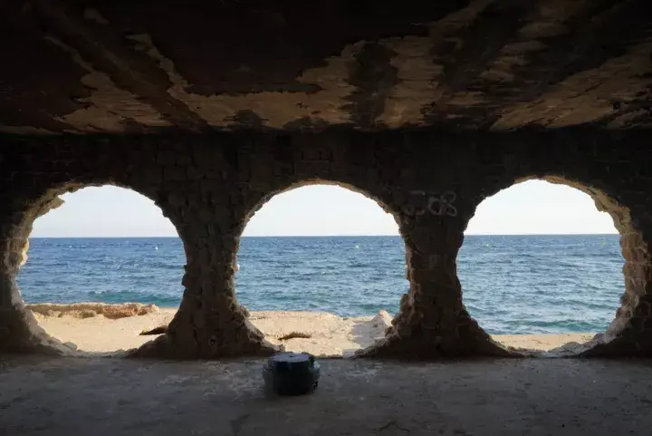 红墙旁还有条小路沿着台阶往下走,就会看到一处海边的曾经的酒吧“残迹”,特色是面朝大海的这些圆形挖空造型: