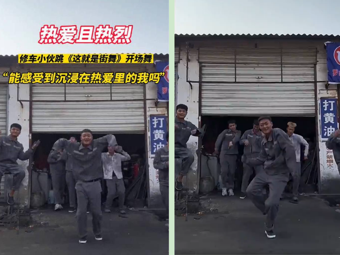在修车店门前率性跳舞