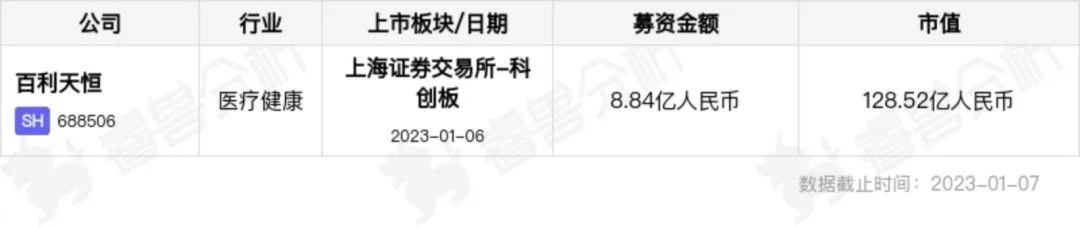 本周重点监测到国内上市公司1家在科创板上市,「百利天恒」最新市值为128.52亿元人民币。