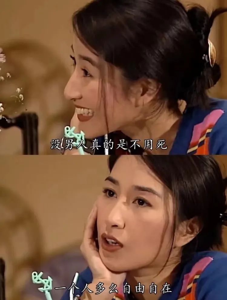正如《陀枪师姐》中的娥姐,和丈夫离婚但丝毫没有影响到工作,独自带孩子和考专业配枪女警官两不误。遇到媒人要让她相亲时,她的回答放在今天依旧是独立女性教科书式的答案⬇