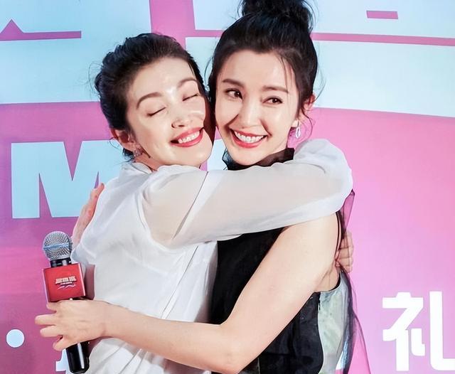 两姐妹在活动现场互动,我们可以看到她们彼此拥抱。李冰冰看起来真的好多了。当他微笑时,露出了洁白的牙齿。然而,她脸上的法令纹身仍然很明显,此时她穿着一条黑色裙子。