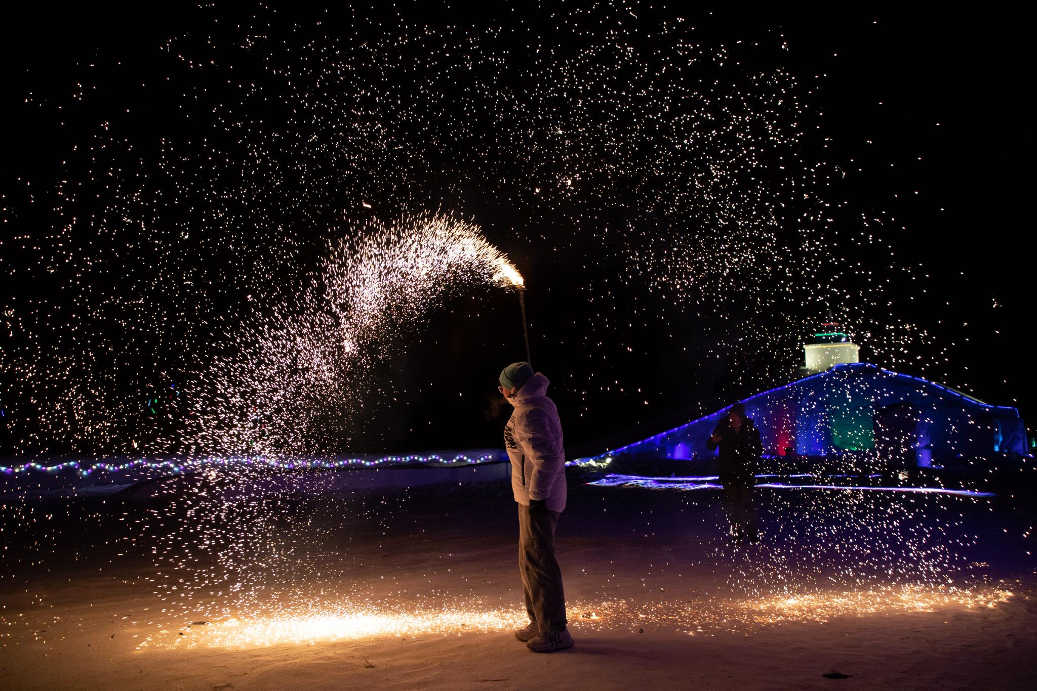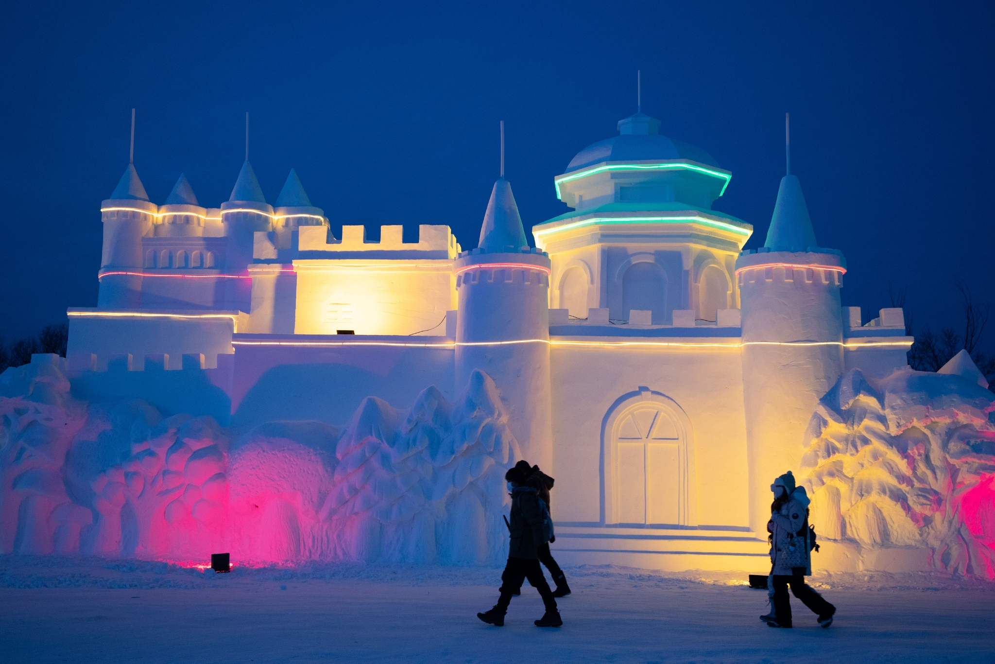 1月7日,游客在漠河市北极村冰雪童话世界内游玩。新华社记者 张涛 摄