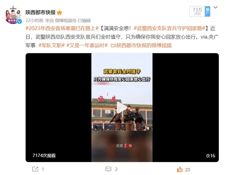 小屏传播方面,陕西都市快报微博设置话题#兔圆圆过好年#、#温暖回家路#,并设置热点互动区与网友互动。根据记者回传素材,第一时间抓亮点,找趣点,精编短视频在全网推出。此外,融媒矩阵平台推出三场直播:“兔圆圆过好年 铁路春运 温暖回家路”、“满满安全感!武警西安支队官兵守护回家路”、“温暖回家路丨西安火车站新增温馨服务岗”,将镜头对准在西安火车站候车大厅里即将回家的人们,聆听他们温暖人心的春节故事。