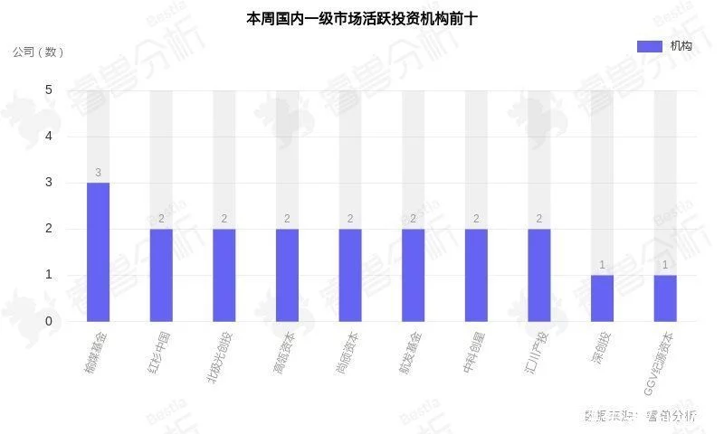 数据来源:睿兽分析本周独角兽及大额融资事件本周国内一级市场大额融资事件生物医药创新研发中心「飞镖加速器ATLATL」轮次:A轮金额:数亿美元投资方:高瓴资本创新型生物制药企业「博锐生物」轮次:A轮金额:过15.00亿元人民币投资方:杭州富阳产业基金、台州国运集团海洋工程承包商和装备制造商「惠生重工」轮次:A轮金额:15.00亿元人民币投资方:南通产业投资太阳能电池硅片生产商「宇泽半导体」轮次:B轮金额:12.00亿元人民币投资方:由国家绿色发展基金领投,聚丰股权、金石投资、创合鑫材基金、尚颀资本、开投瀚润投资、楚雄市城乡投跟投高端生物药研发商「华润生物」轮次:B轮金额:6.00亿元人民币投资方:由国调基金领投,混改基金、建信股权、粤科金融、国联集团跟投点击查看更多融资事件本周海外一级市场大额融资事件海外市场中医疗健康、企业服务、人工智能领域投资活跃度较高。综合娱乐服务提供商「Kakao Entertainment」轮次:天使轮金额:9.66亿美元投资方:由Saudi Arabias Public Investment Fund(PIF)、GIC新加坡政府投资公司联合领投东南亚快递服务商「闪电达flash express」轮次:F轮金额:4.47亿美元投资方:未披露美国肾脏疾病护理提供商「Monogram Health」轮次:B+轮金额:3.75亿美元投资方:CVS Health Ventures、Memorial Hermann Hospital、Frist Cressey Ventures(FCV)、Heritage、Pura Vida Investments、Cigna Ventures、Humana、Norwest Venture Partners、TPG美国医疗保健行业调度平台「ShiftKey」轮次:A轮金额:3.00亿美元投资方:由Lorient Capital领投,Clearlake Capital Group、Health Velocity Capital、Ares Management(锐盛投资海外)、Pantheon Ventures跟投德国光伏租赁公司「Enpal」轮次:D轮金额:2.15亿欧元投资方:由The Westly Group、Activate Capital Partners、TPG Rise Climate Fund联合领投,HV Capital、Softbank Vision Fund、Princeville Capital跟投点击查看更多融资事件本周国内一级市场活跃机构从机构投资活跃度来看,榆煤基金(3个)、红杉中国(2个)、北极光创投(2个)、高瓴资本(2个)、尚颀资本(2个)在本周创投市场中较为活跃。