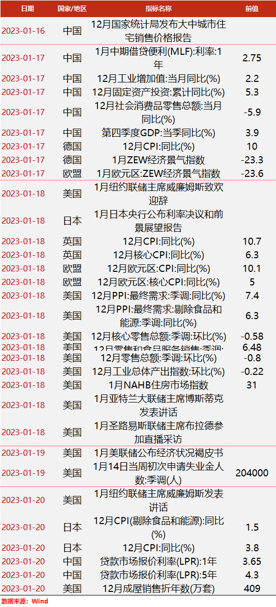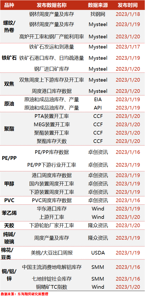 【期货周历】下周重要行业及宏观事件一览