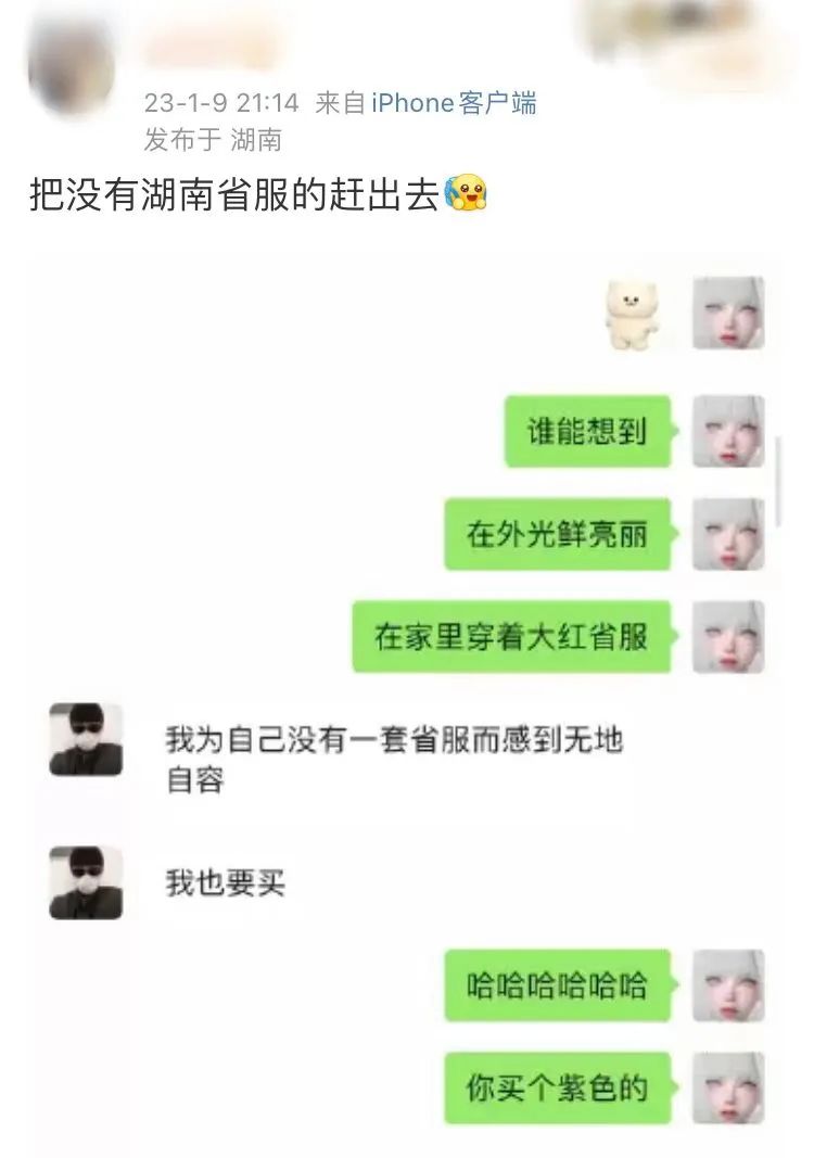 在湖南有个省服定律:随机抓取一个在家的湖南人,他肯定且一定穿着湖南省服。