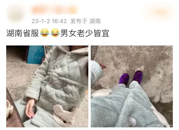 它可不是简单的睡衣,对于长江流域没有暖气的人来说,湿冷的冬天,没有什么是一套湖南省服解决不了的。