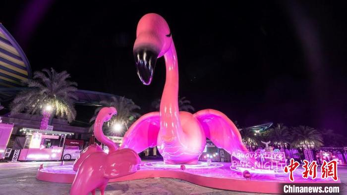 迎接兔年春节,三亚亚特兰蒂斯水世界“粉色之夜”的巨大粉色摆件。 王雯供图三亚的星级酒店也纷纷推出“一站式”兔年新春度假新玩法。