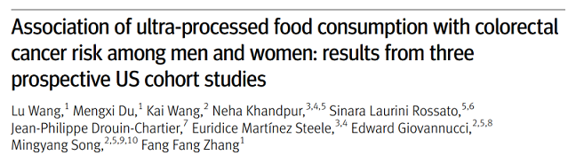 该论文的第一作者 Wang Lu 博士表示,与其他癌症类型相比,结直肠癌可能是受饮食影响最大的癌症,加工肉类大部分属于超加工食品,是结直肠癌的重要危险因素。而且,超加工食品的添加糖含量高,纤维含量低,这会导致肥胖,而肥胖也是结直肠癌的既定风险因素。